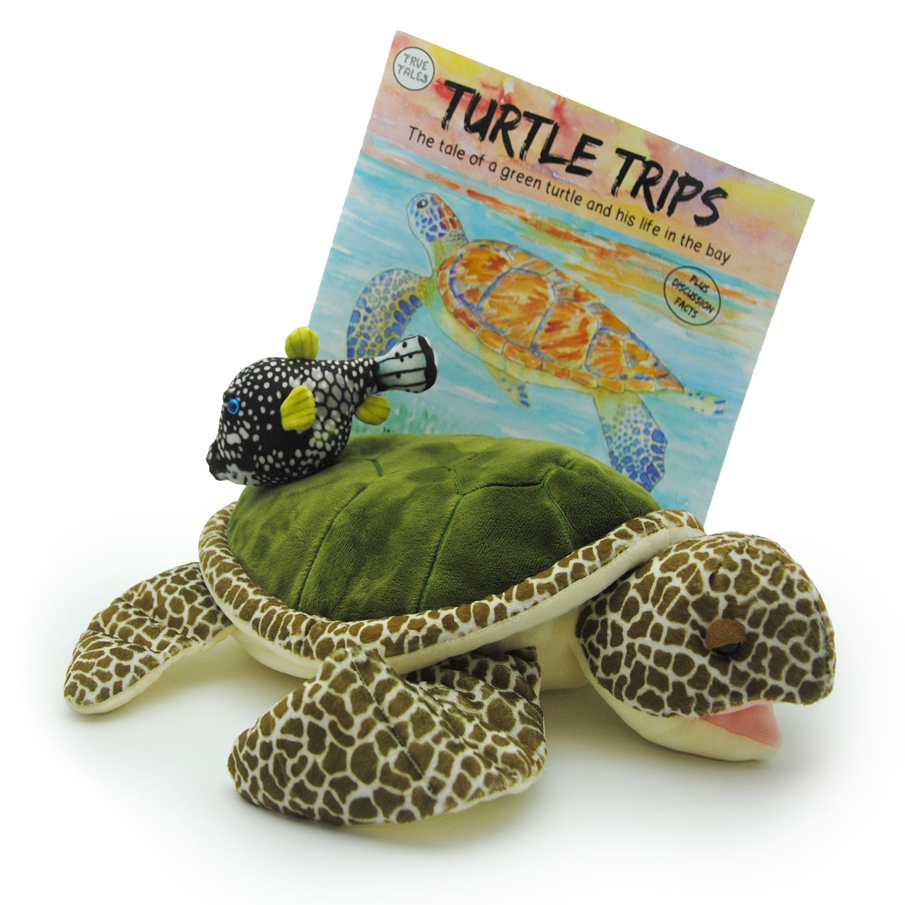 SAVE US$2 when you purchase the 'Turtle Trips' book by Sue Trew and the Gus the green turtle and Dot the boxfish toys together. It makes a great gift that kids will love! Sold individually too.